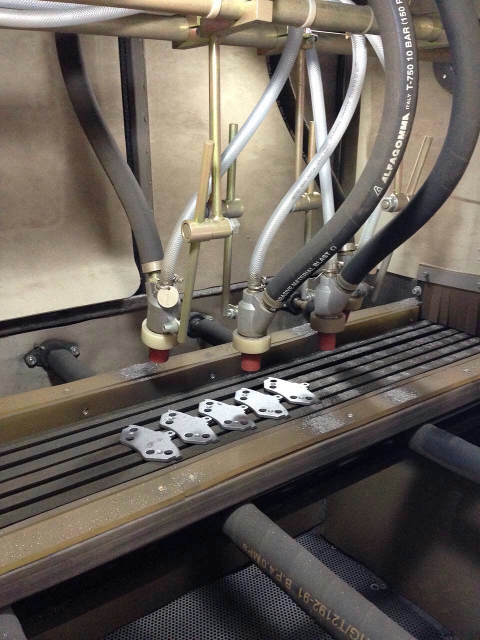 剎車(chē)片的生產(chǎn)過(guò)程中質(zhì)量尤為關(guān)鍵,其中最重要的一個(gè)生產(chǎn)環(huán)節(jié),鐵才與剎車(chē)片雛形粘合,粘合前需要通過(guò)自動(dòng)噴砂機(jī),才能有效的粘合。